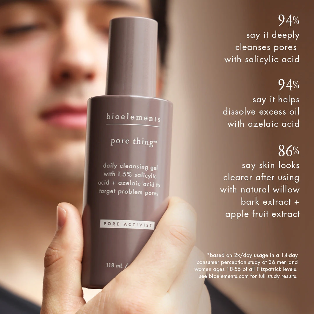 A barrier-friendly, daily cleansing gel with multi-level exfoliators to target problem pores and clarify skin. Sebum-soluble salicylic acid penetrates through excess oil and clogging debris to break down impurities. Azelaic acid gently dissolves the bonds of dead skin cells, while natural willow bark extract works like a vacuum on excess oil. Apple fruit extract helps maintain barrier hydration, as antioxidant green tea soothes. Skin emerges fresh, bright, smooth and purified.