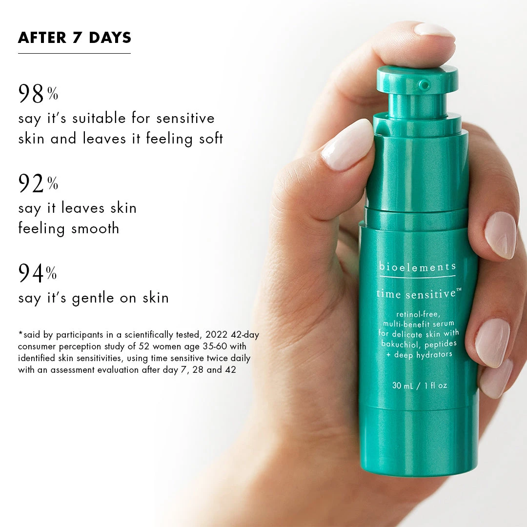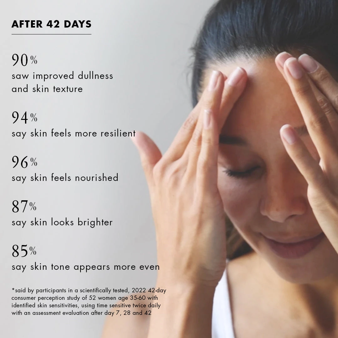 Slow down the race against time. This age advocating serum does it all, without irritation. Formulated with potent bakuchiol – a natural retinol-alternative, plus legacy peptides, it targets premature age progression with a powerful antioxidant defense against environmental oxidative stress. Helps protect and nourish the hydrolipidic barrier, with deep-penetrating hydrators that reserve skin’s water circulation. Used daily, it improves texture, wrinkle appearance and the feel of firmness, while cell turnover revs up to target pores, spots and uneven tone. Created for all skin types – especially sensitive, as it helps decrease the intensity of transitory or persistent redness.