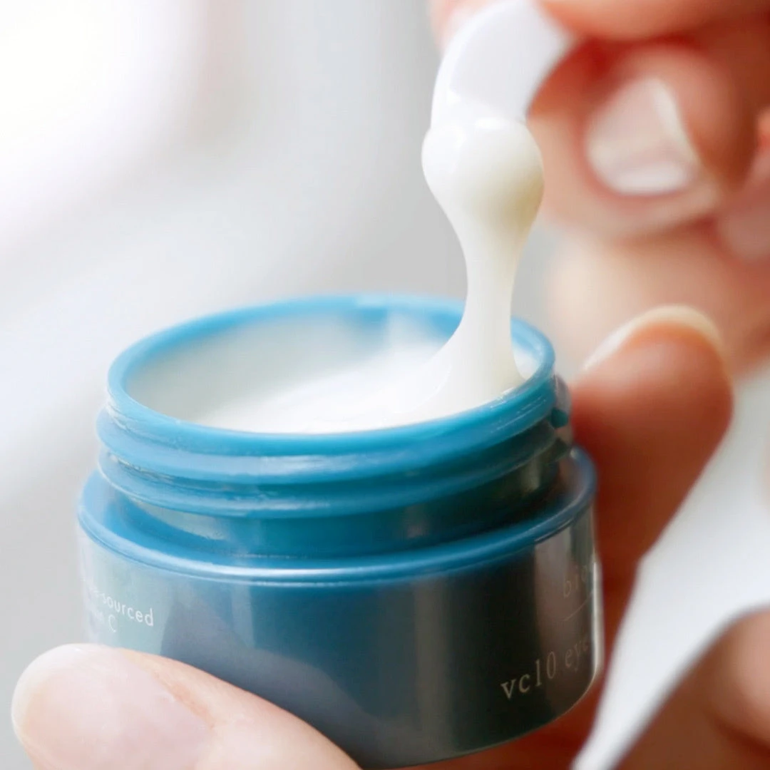 A powerful vitamin C creme to target all signs of eye aging, including fine lines + crow’s feet, dehydration, dark circles, puffiness, sagging, dark spots, and tone. Powered by our signature vc10 concentration of 10% stabilized vitamin C triple-sourced from C derivatives + natural acerola cherries, plus hydrating, brightening, firming + puff-targeting algae, peptides, caffeine and cucumber.